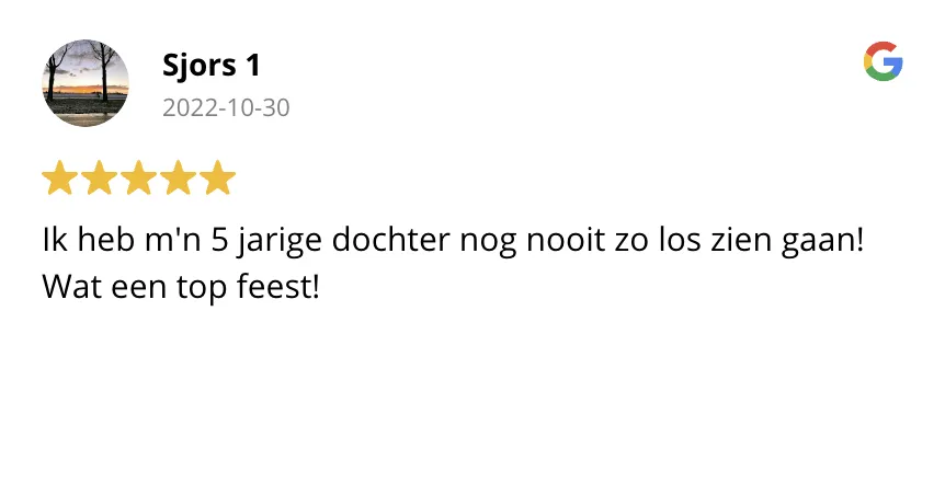"Non Stop Dans Party bracht puur plezier op het verjaardagsfeestje van onze dochter! De Kids DJ zorgde ervoor dat iedereen aan het dansen was, de Foam Party was een succes bij de kinderen en de Balloon Artistry liet ons allemaal versteld staan. Een aanrader voor een magische ervaring!" 🎉🎈🎶